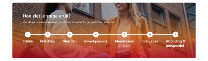 Wil je snel weten of wij een stageplek voor jou hebben? Vergeet dan niet je naam, telefoon (optioneel), opleiding & jaar, gewenste start (sep/feb/anders), regiovoorkeur, motivatie, en of je een VOG-akkoord hebt door te geven.